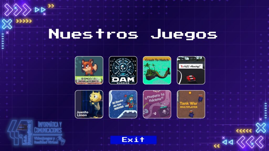 Nuestro centro contó con un stand propio en el que se expusieron varios videojuegos desarrollados por el alumnado del Curso de Especialización en Desarrollo de Videojuegos y Realidad Virtual, así como alumnos de 2º DAM, tanto del presente curso académico como de ediciones anteriores.