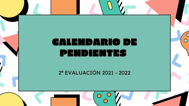 A continuación podrá ver el calendario de pendientes de la 2ª EVALUACIÓN del curso 2021 – 2022 Ver el calendario.