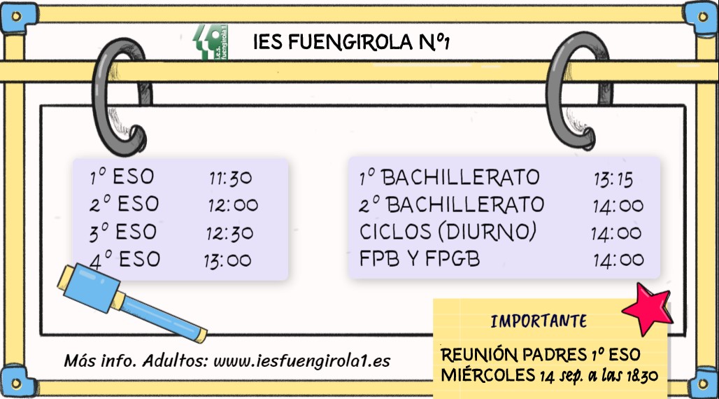 Calendario 1º Bachillerato Septiembre Diurno. Calendario 1º Bachillerato Septiembre Adultos.