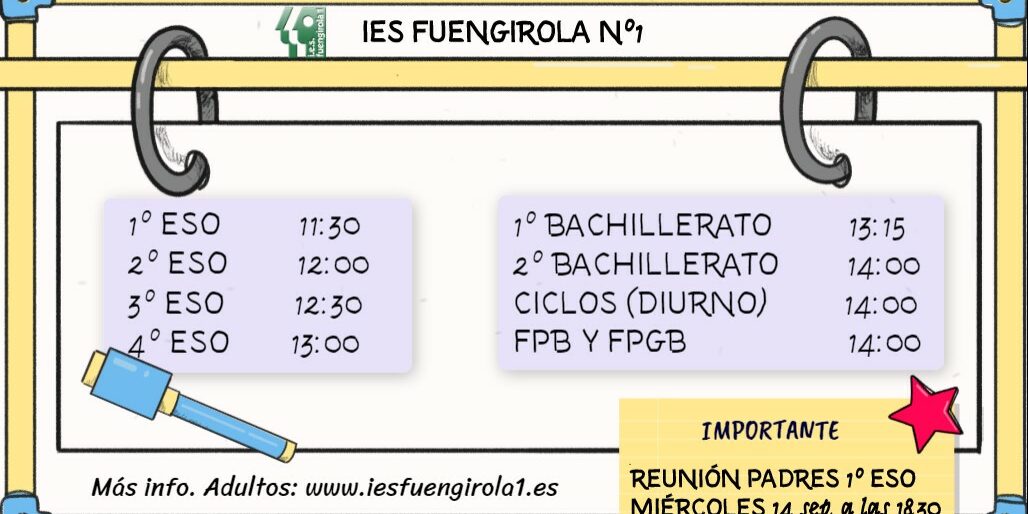 Sep142022Jefaturaentrada_alumnado_diurno_2223 Categoría: Jefaturaseptiembre 14, 2022 Comparte esta noticia Share on FacebookShare on Facebook Share on XShare on X TweetShare on Pinterest Share on WhatsAppShare on WhatsApp Share on LinkedInShare on LinkedIn Navegación entre publicacionesAnteriorPublicación anterior:Libros de texto Bachillerato Curso 2022/2023 (Diurno y adultos)SiguientePublicación siguiente:HORARIO DE RECEPCIÓN DEL ALUMNADO ADULTOINICIO CURSO 2022/2023Noticias relacionadasHORARIO DE RECEPCIÓN DEL ALUMNADO ADULTO INICIO CURSO 2025/2026septiembre 10, 2025HORARIO DE RECEPCIÓN DEL ALUMNADO DIURNO INICIO CURSO 2025/2026septiembre 10, 2025Calendario exámenes Septiembre 2025. 1º Bachillerato Diurno y Adultosjulio 4, 2025HORARIO DE RECEPCIÓN DEL ALUMNADO DIURNO INICIO CURSO 2024/2025septiembre 11, 2024HORARIO DE RECEPCIÓN DEL ALUMNADO ADULTO INICIO CURSO 2024/2025septiembre 10, 2024Calendario exámenes Septiembre 2024. 1º Bachillerato Diurno y Adultosjulio 8, 2024