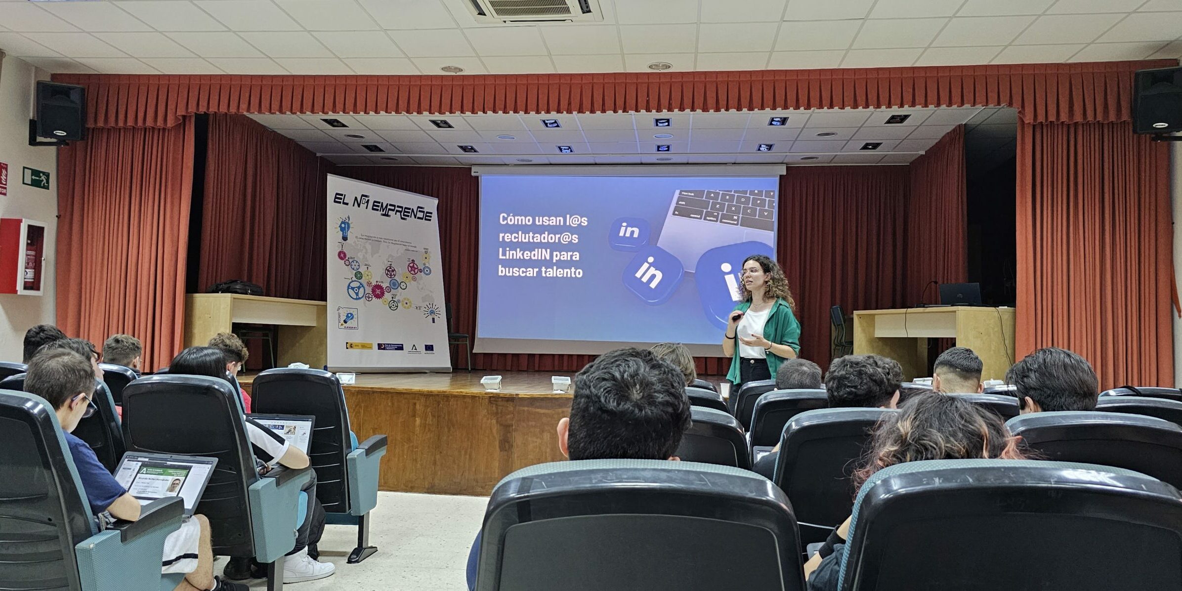 En las dos horas que duró el evento, celebrado en el salón de actos del centro, el alumnado pudo crearse una cuenta en la citada red profesional, editar su perfil y recibir valiosos consejos de María Jiménez Serrano, consultora de formación y empleo de contrastada experiencia en recursos humanos, para trabajar su marca personal y conseguir llevar a cabo un proceso de búsqueda de empleo fructífero y satisfactorio.